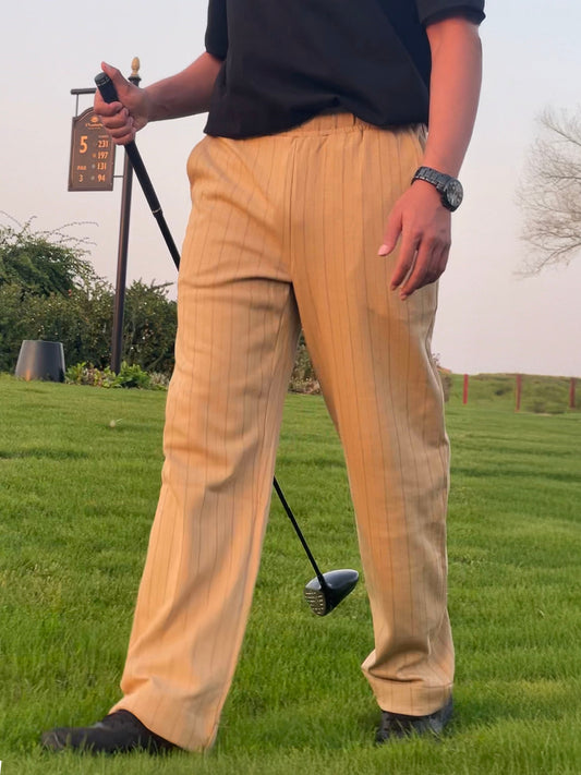 بنطلون اليجانتي مخطط باللون البيج