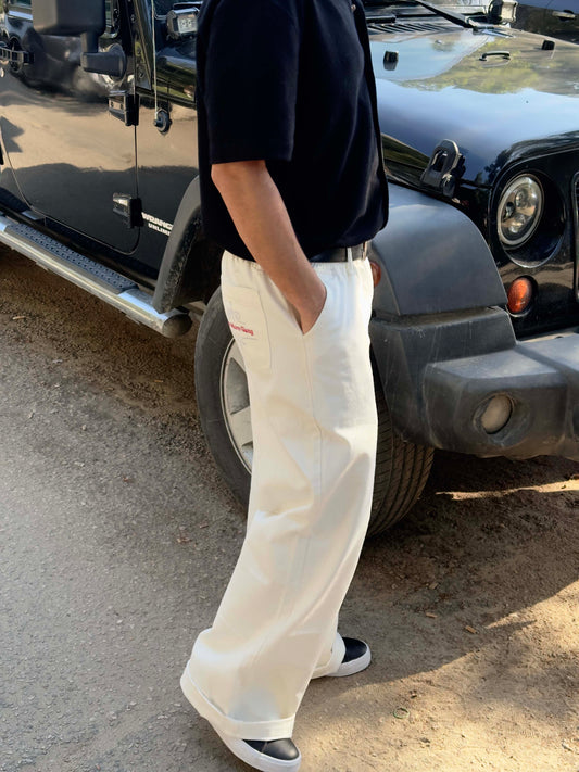 تنزيلاتماركة:ONEMOREGANG®بنطلون وركر بتصميم ياباني ابيض
