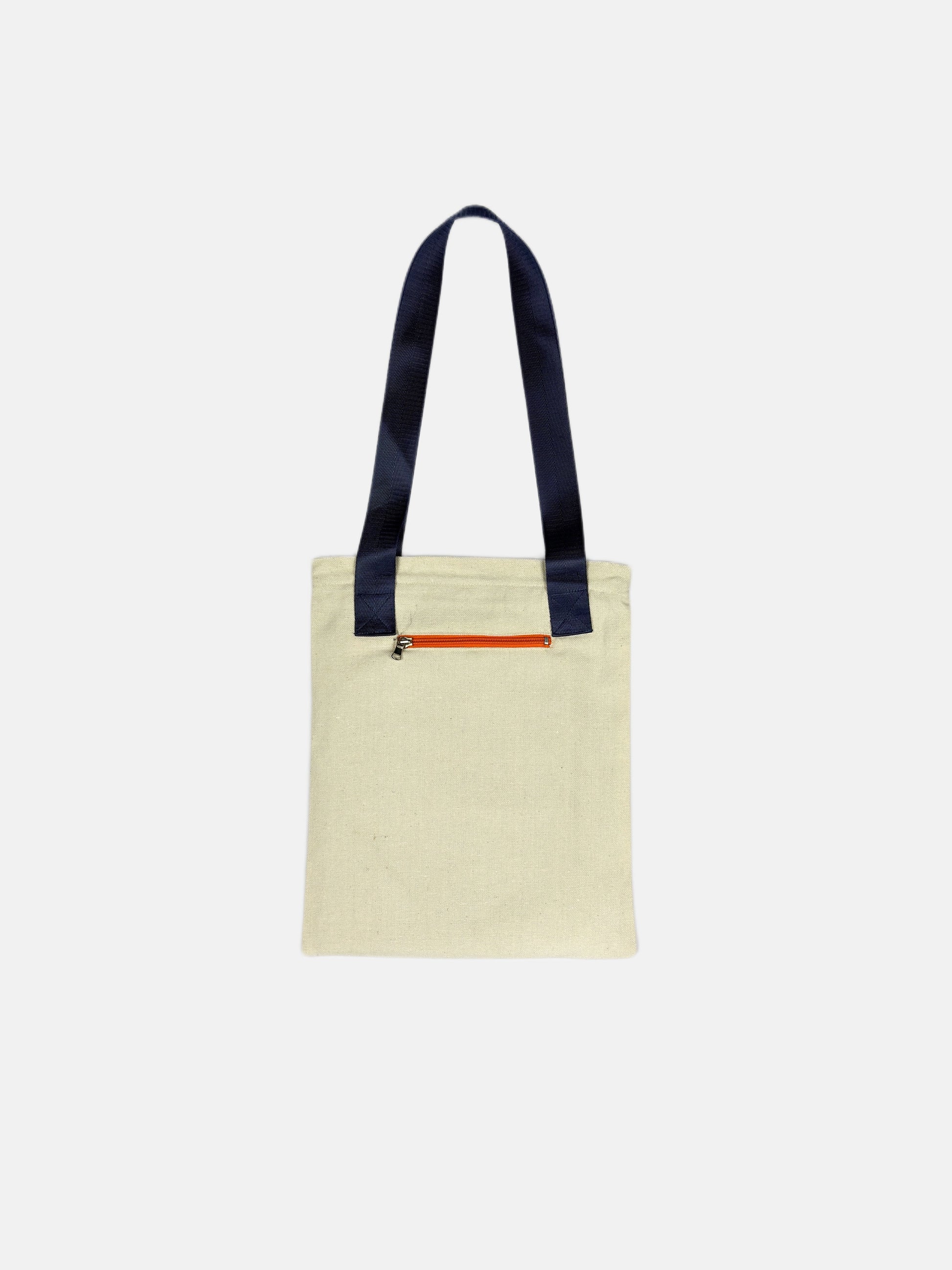 Crafted from 100% thick threaded cotton- blends, durable colorful handles, and zippers for extra security, this tote bag is all you need to walk down your way.